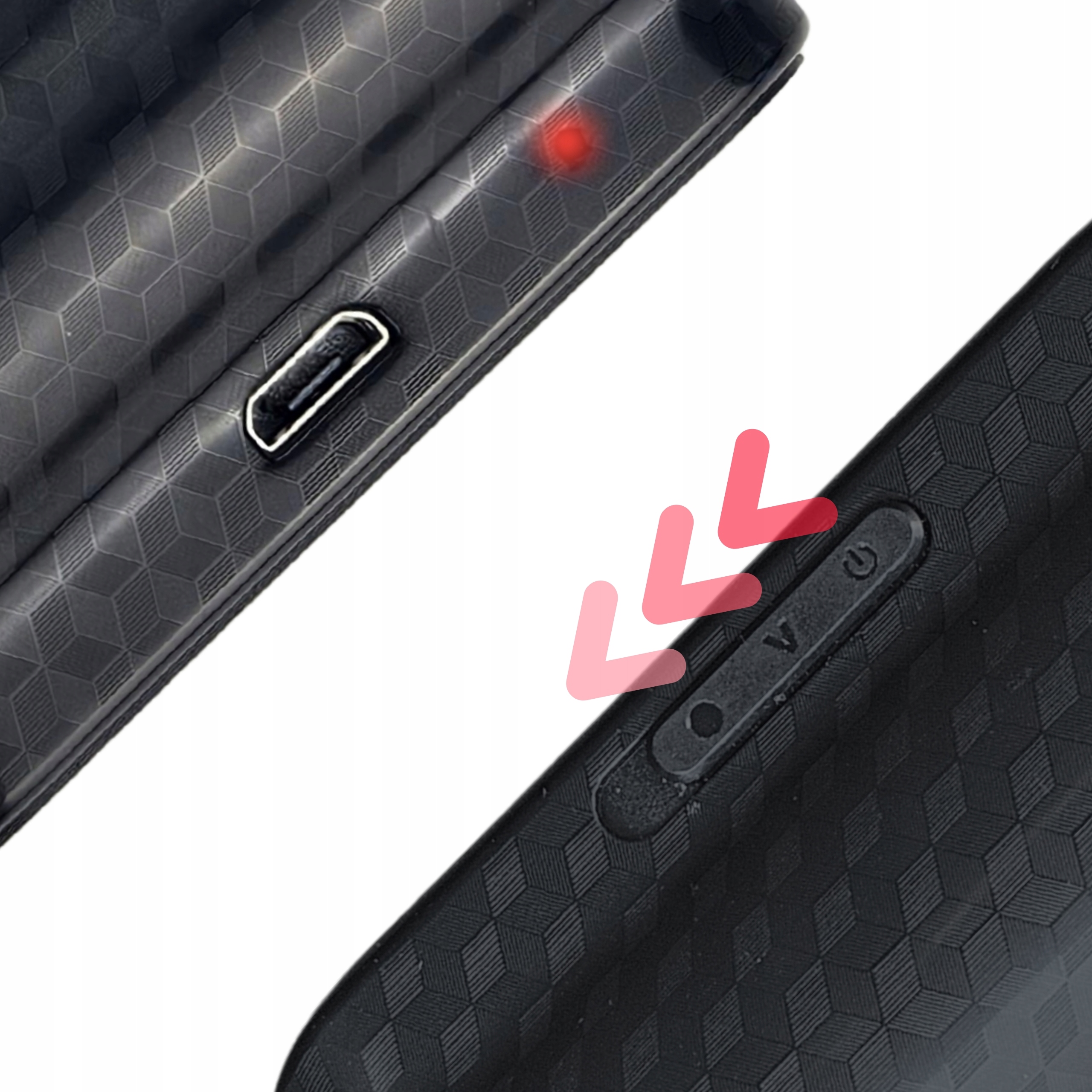 Nagrywanie: Przesuń suwak na wybraną pozycję O lub V, czerwone światło mrugnie trzy razy i zgaśnie. Urządzenie zaczyna nagrywać (O) lub czuwać (V).