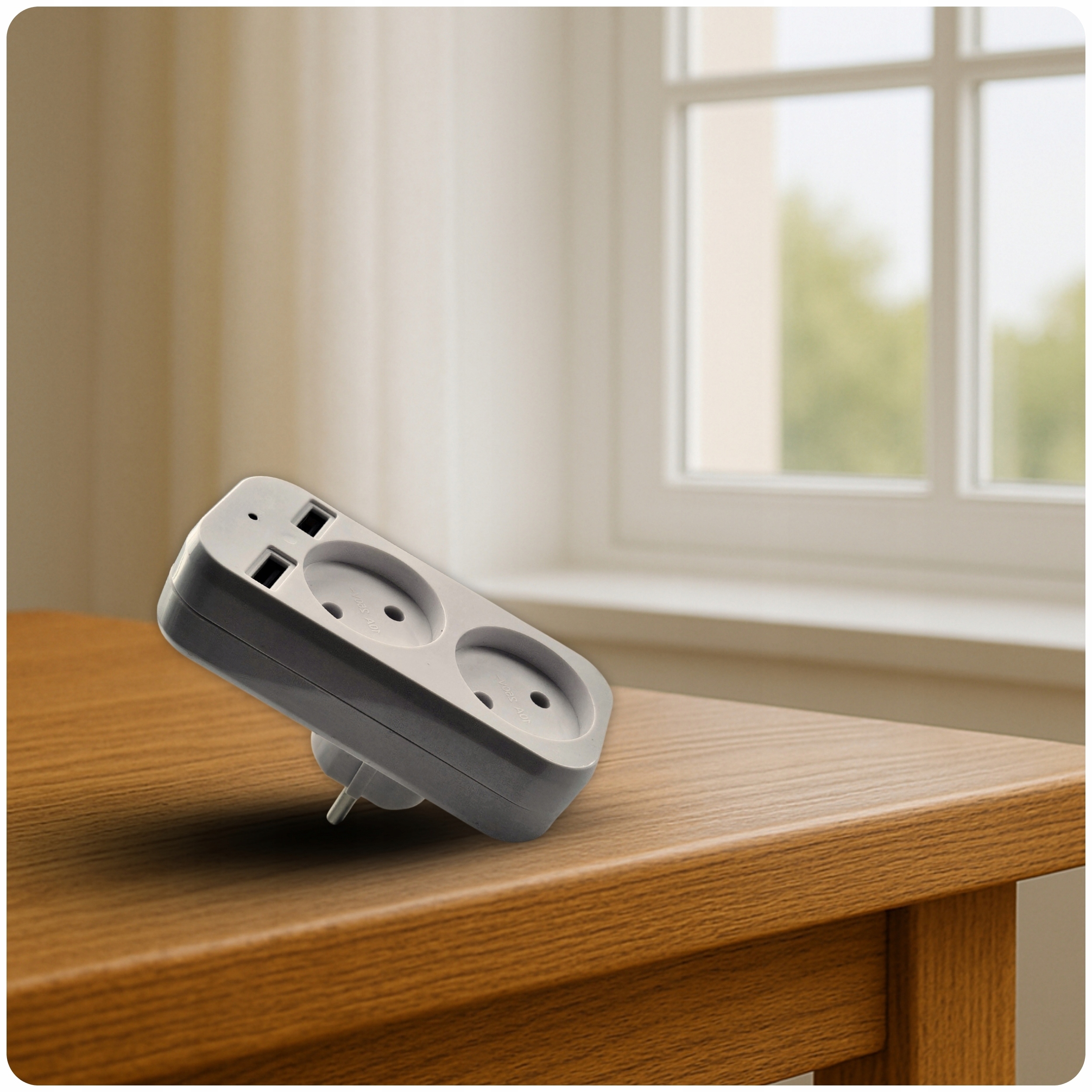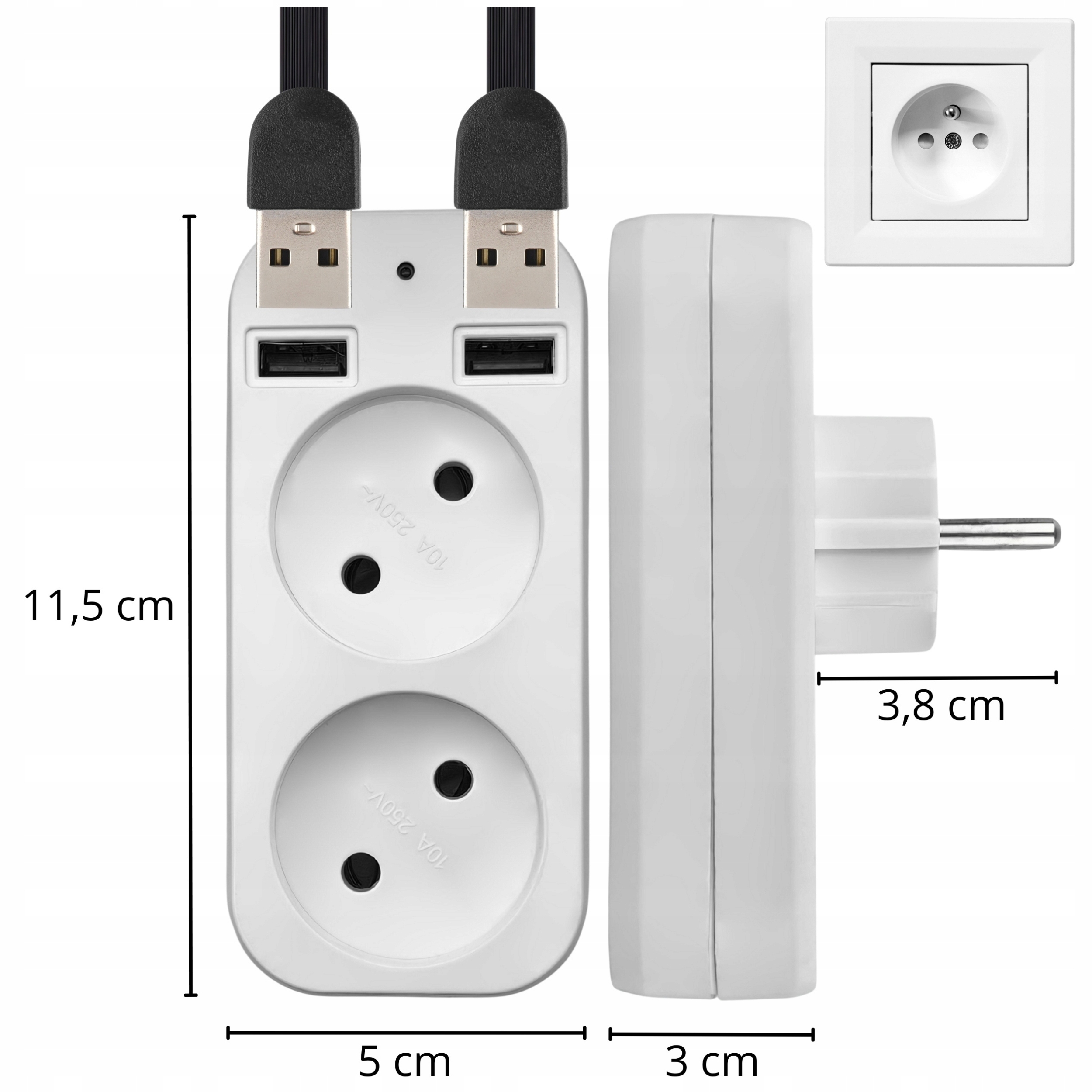 Oprócz 2 standardowych gniazdek rozgałęźnik posiada dodatkowe 2 porty USB. Zasilaj wiele urządzeń na raz!