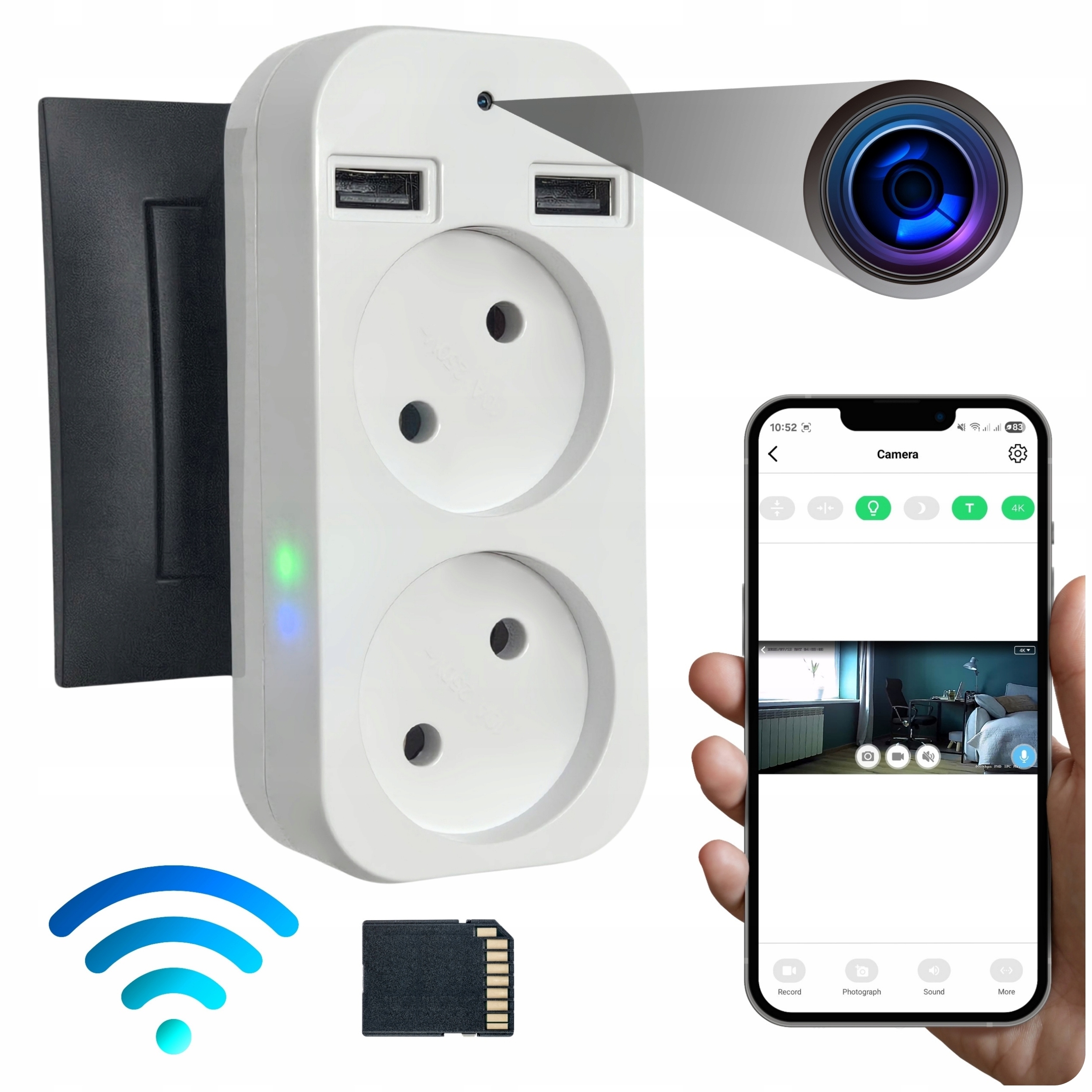 UKRYTA KAMERA SZPIEGOWSKA ROZGAŁĘŹNIK ELEKTRYCZNY WIFI