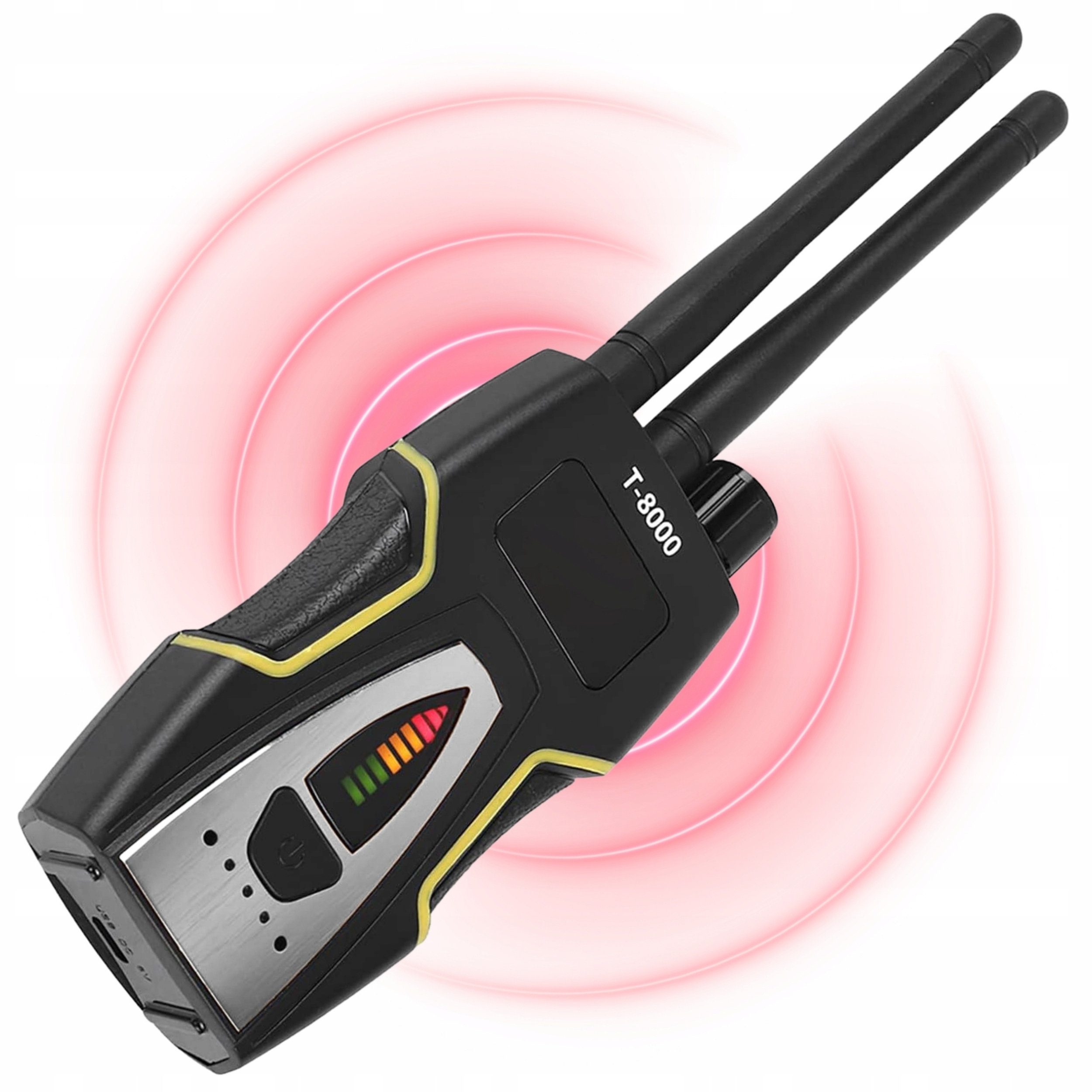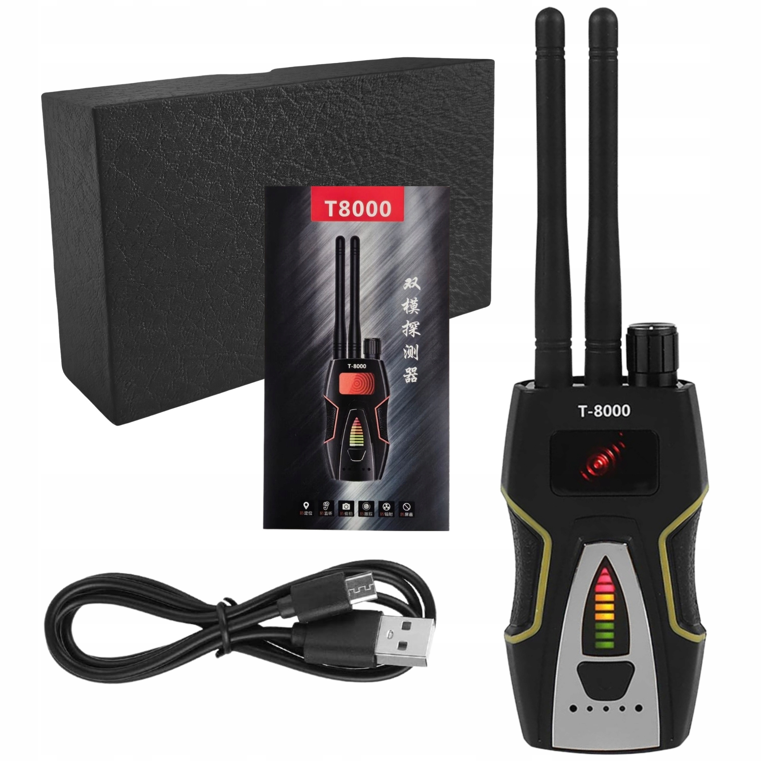 Dzięki szerokiemu pasmu wykrywania od 1 MHz do 8 GHz zlokalizujesz ukryte urządzenia szpiegujące różnego typu: